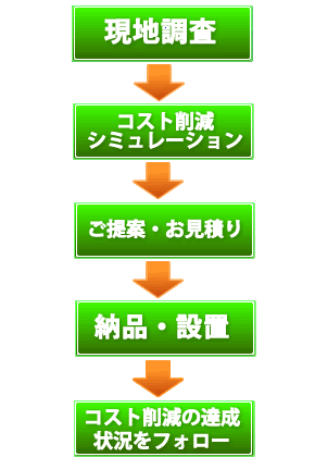 省エネニューシステムでは、1年の実績により、お客様の水道の利用状況を現地調査させて頂いた上で、目標とするコスト削減の幅をシミュレーションし、ご提案しております。